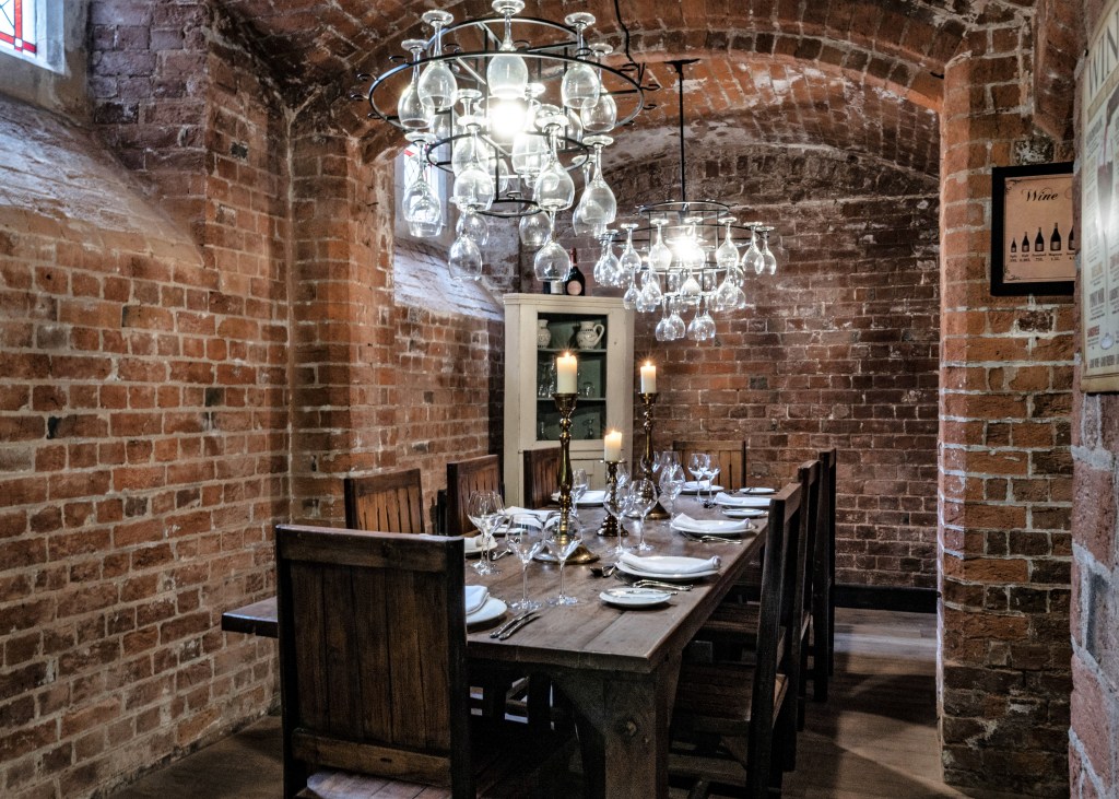 Back down in the cellars, the abbey bakery has been turned into an intimate private dining area, with the original Birmingham-made ovens forming a unique backdrop.