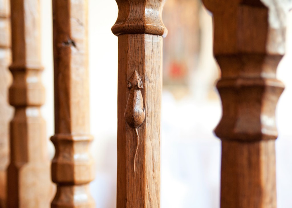This room’s oak fittings were carved by Robert ‘Mousey’ Thompson, famous for adding wooden mice to his furniture – we had fun finding a couple of them.